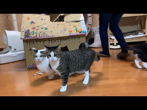 ダンボール猫ハウスの最後を見届ける猫